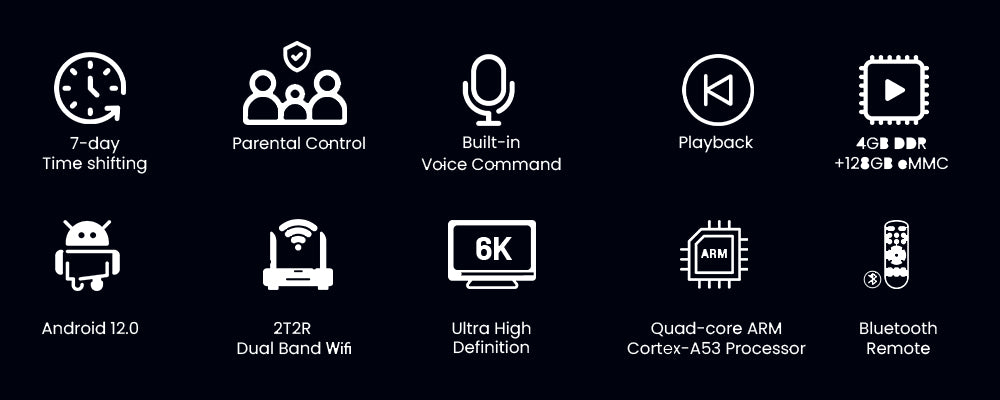 With up to 7 days of Time Shift and Playback. the SuperBox S7 Ultra multiplies flexibility far beyond older generations. Pause. rewind. or replay shows anytime you want. Combined with its massive 128GB storage. there's more room to store replays. recordings. or apps without compromise.